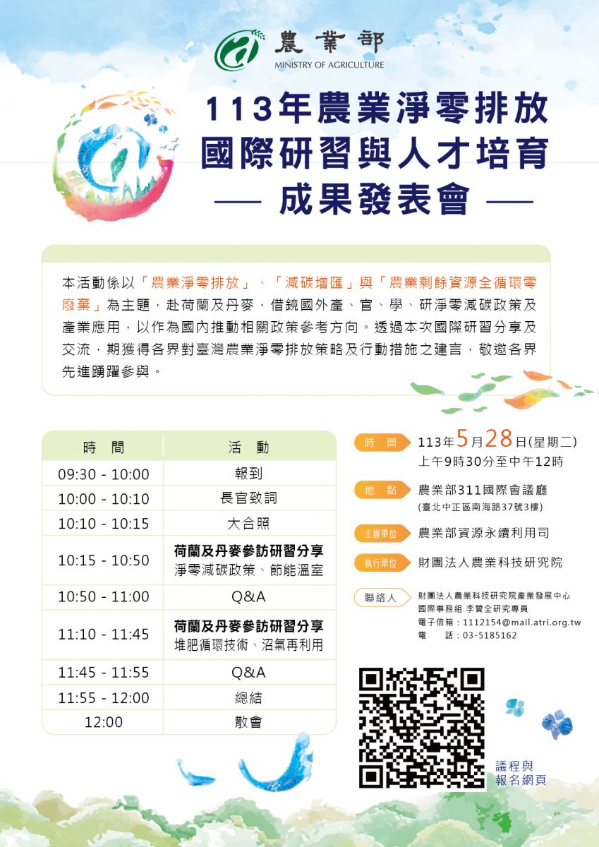 113年農業淨零排放荷蘭、丹麥國際研習與人才培育成果發表會