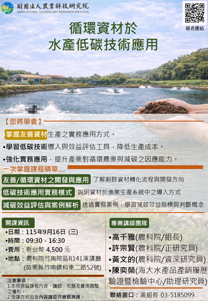 產業學院課程~循環資材於水產低碳技術實務攻略