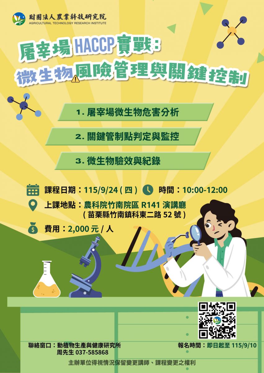 產業學院課程~屠宰場 HACCP 實戰:微生物風險管理與關鍵控制