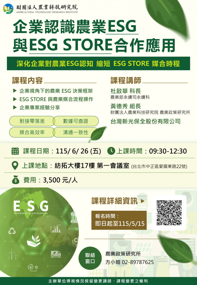 產業學院課程~企業認識農業 ESG 與 ESG STORE 合作應用